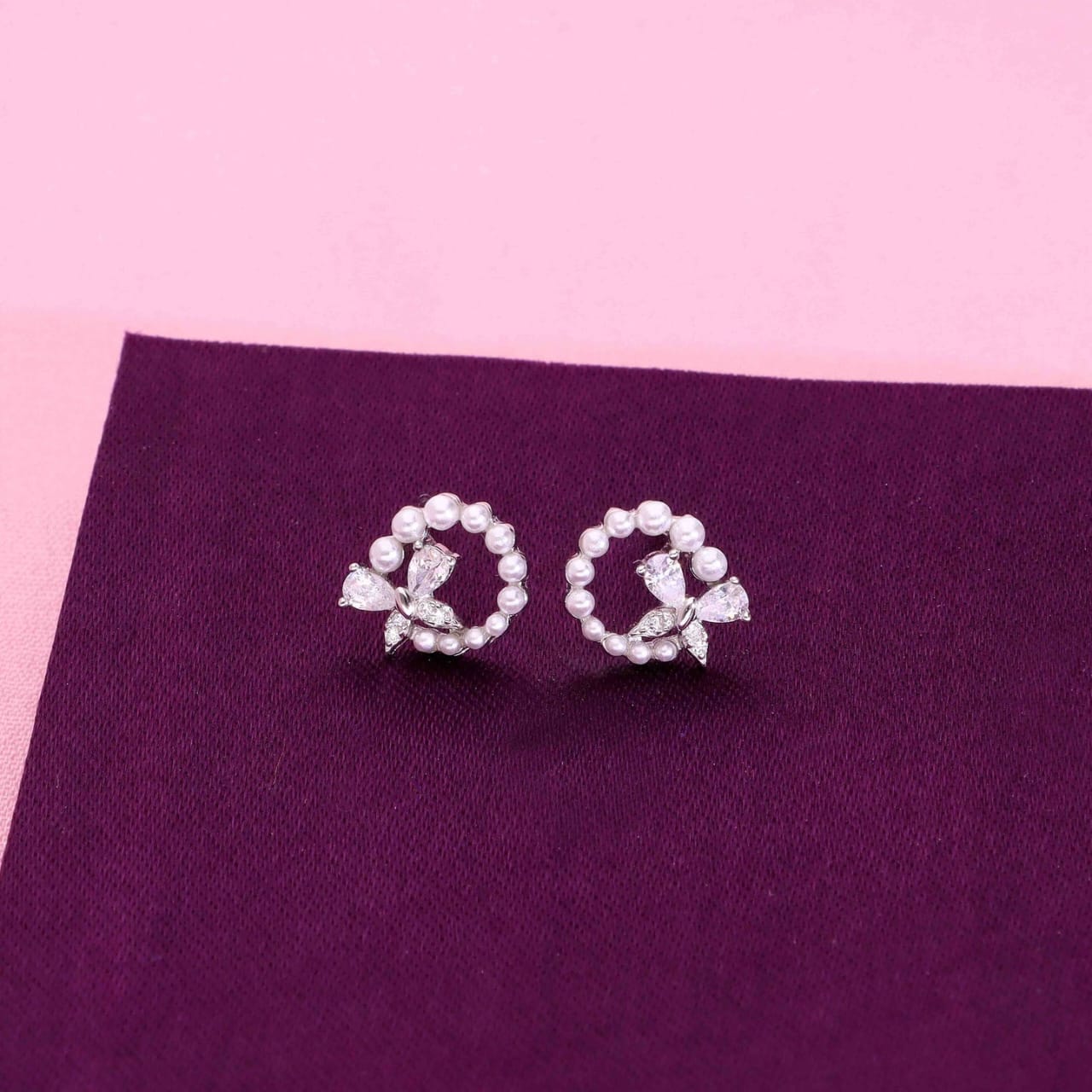 Pink Pave Heart EarringsSterling Silver Charming Pearl Butterfly Earrings