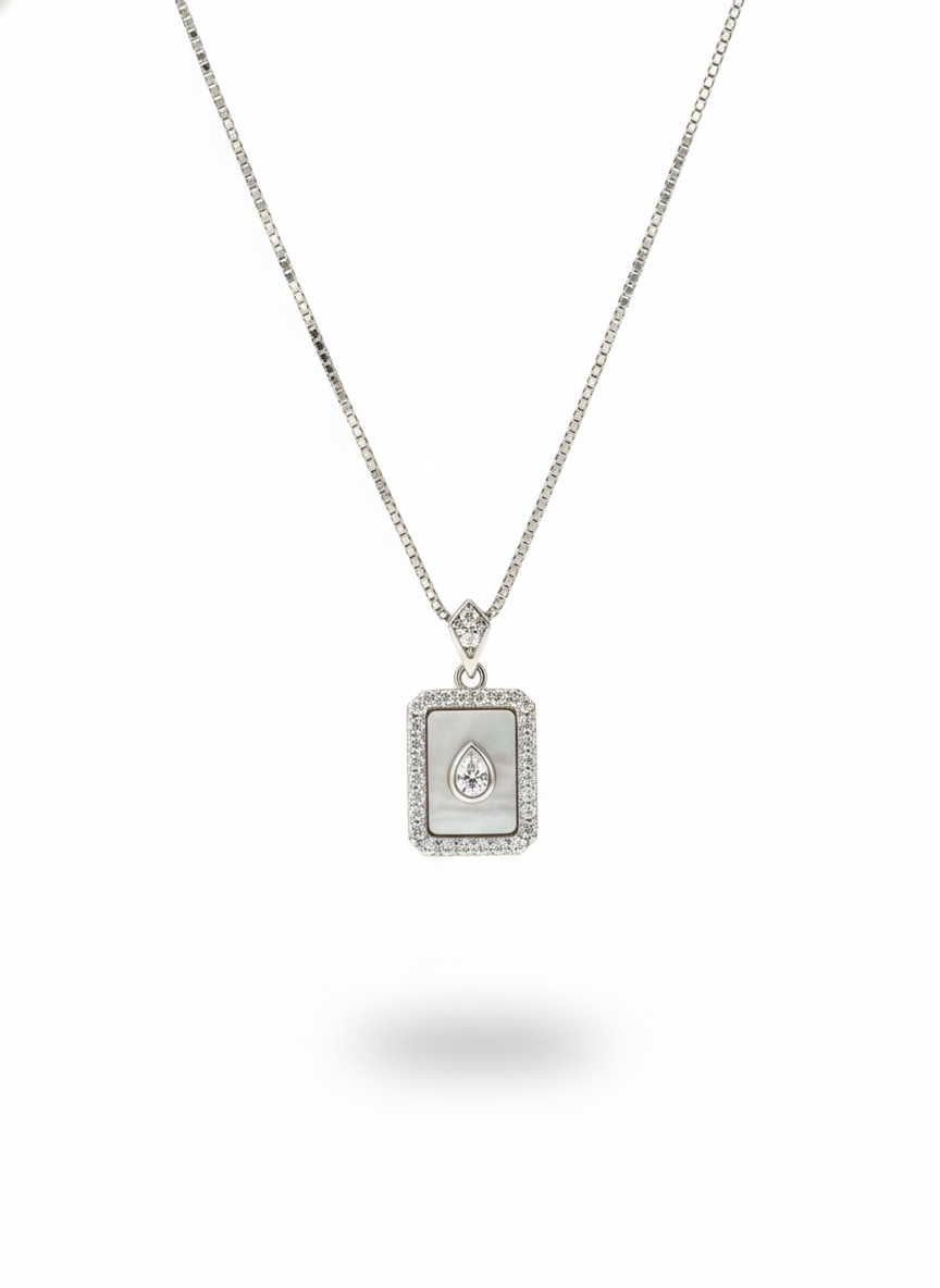 925 Sterling Silver Rectangular Mother of Pearl Pendant Necklace (Pear Stone)